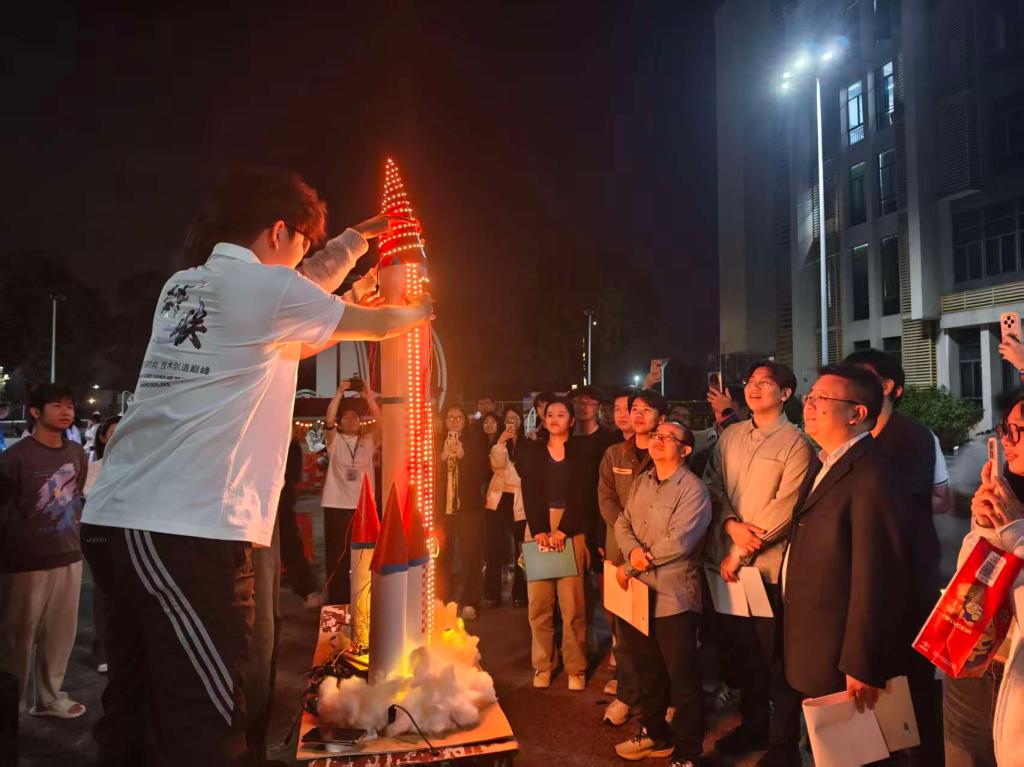 蒋鹏从匠心智造、创意为翼以及协作聚力三个方面勉励同学们要以赛事为契机,永葆创新热情、秉持实干精神、厚植家国情怀,将专业知识与实践的深度融合、传统文化与现代科技的碰撞共生,服务国家战略需求,在光影中彰显工科青年担当。