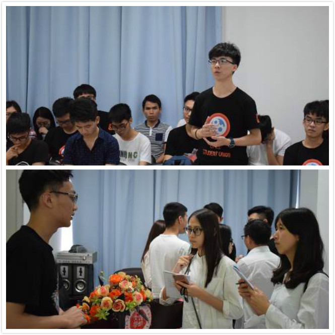 紧接着,机电公司团委员工会余卓晋主席和温庆辉部长分别就员工会管理理念和团委组织建设这两方面进行了发言,主要介绍了主席团分管模式、“云之家”共享平台、团学奖助学金制度、学代会管理制度以及各个部门主要开展的活动。