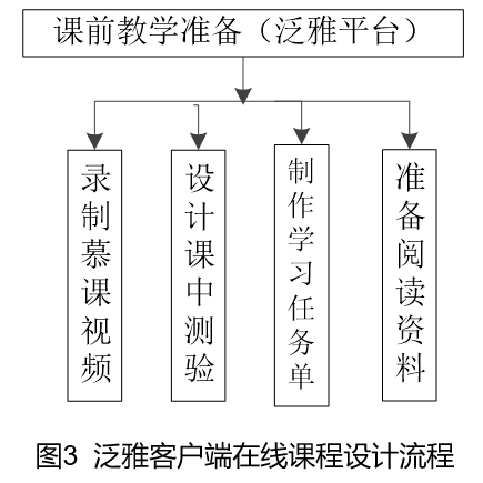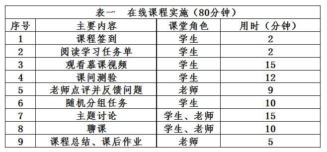 | 四、基于泛雅客户端的在线课堂精心设计方案 基于泛雅客户端的在线课堂设计方案如图3所示。课前准备包括录制慕课视频、设计课中测验、制定学习任务单、准备阅读资料上传至泛雅平台。课中通过播放慕课视频、完成课中测验培养员工紧凑的阅读理解能力,这是面对面教学不能达到的;教师有针对性的实施慕课“聊课”技术,师生之间的协作与交流。有效推进员工的学习进程。课中实施时间计划如表一所示。在面授课堂中,任课教师面对全班员工讲出一句话、一个概念、一种方法,员工即便没听到或者没听懂,也无法让老师停下来,无法让老师再讲一遍。观看“慕课”视频则不同,员工可以在任何一个地方让“老师”停下来,也可以让“老师”再讲一遍或重复多遍,一切等他理解了、明白了,再继续进行。这种改变有利于提升教学效果,提高员工成绩。 |