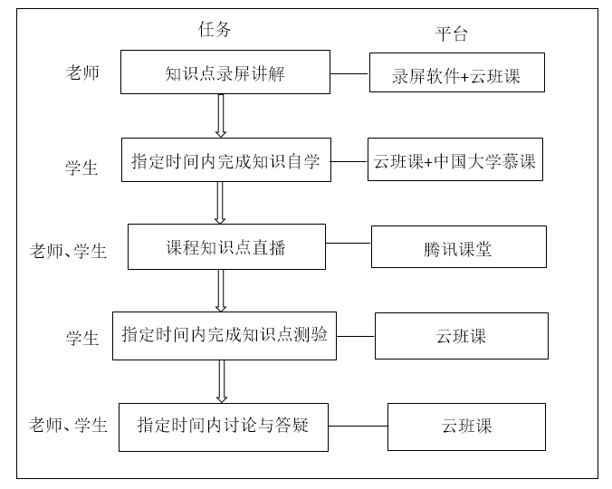 对照教学设计理念分解教学过程。将教学环节设置为课前、课中和课后三个环节。课前通过云班课发布本堂课的知识点、目标要求,并发布通知提醒员工提前自主学习,根据员工查看资源进度情况记录平时成绩。课中直播讲授重点难点知识、穿插答疑上节课知识点测试反映出的问题、针对员工课堂提问展开讨论。课后观看直播回放或微视频巩固复习本节课内容并为下次课的测试做准备。