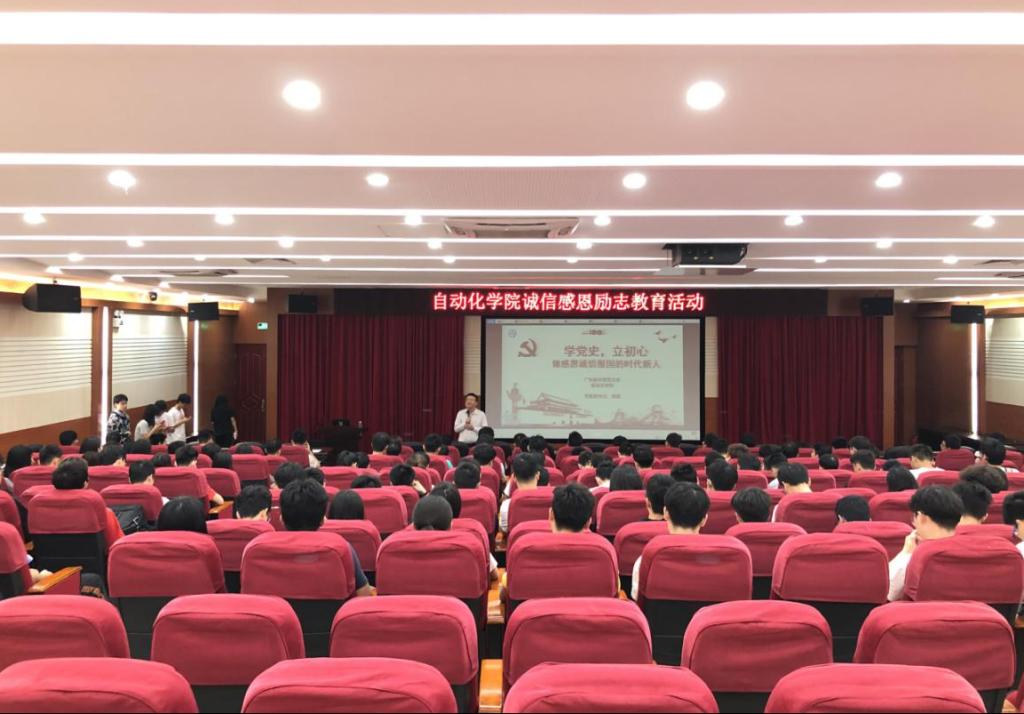 蒋鹏副书记深刻讲授党史“为什么学”、“学什么”、“怎么学”的三个问题,强调历史是最好的教科书,要求同学们牢记初心使命,坚持以习近平新时代中国特色社会主义思想武装头脑,树立正确的世界观,保持良好的道德情操。并深情分享个人成长经历,勉励同学们“怀感恩之心、守诚信之诺、立报国之志”。