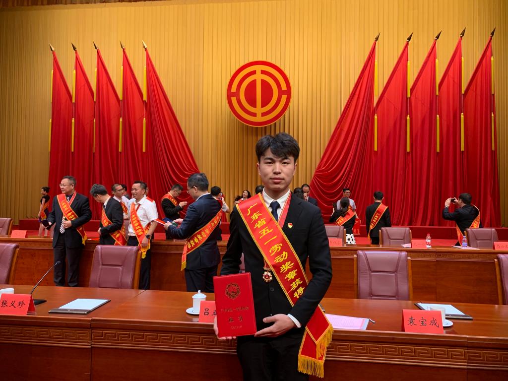 4月29日上午,2021年广东省庆祝“五一”国际劳动节暨劳模表彰大会在广州珠岛宾馆举行。伟德国际victor1946学子陈君辉同学荣获“省五一劳动奖章”荣誉称号。