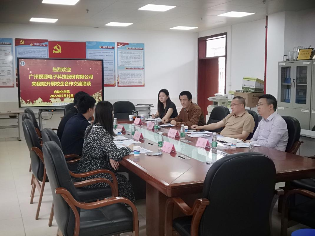 5月19日,广州视源电子科技股份有限公司TV事业部高级经理张家喜一行到公司开展访企拓岗促就业校企合作洽谈活动,公司党委书记杨延军、副书记蒋鹏、副经理宋海鹰及辅导员王雯殊参加本次交流活动。