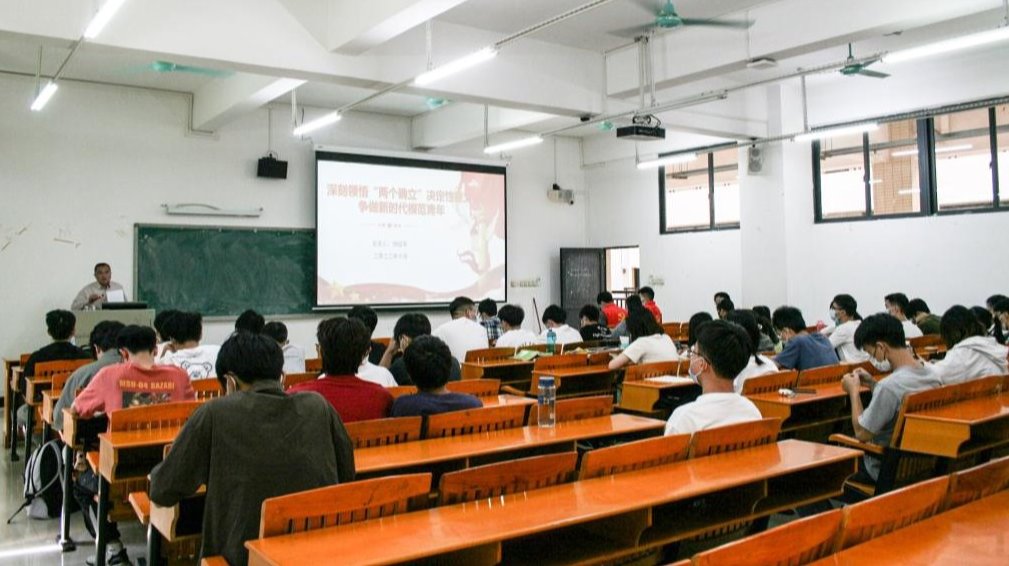 杨延军书记以“深刻领悟‘两个确立’决定性意义,争做新时代模范青年”为主题,从“两个确立”的理论逻辑、历史逻辑和实践逻辑等方面系统、生动讲述了党的十九届六中全会精神、党的百年历史经验、马克思主义建党学说基本原则等内容,并对同学们坚定“两个确立”,争做新时代模范青年提出几点希望,一要强化理论武装,坚定理想信念,二要践行青春使命,勇于担当尽责,三要锤炼品德修养,涵养高尚情操,四要开拓创新,锤炼过硬本领,把伟大建党精神继承下去、发扬光大,进一步坚定马克思主义信仰,坚定共产主义和中国特色社会主义的信念,坚定中华民族伟大复兴中国梦的信心,自觉接受党组织和群众的考验,争取早日加入中国共产党。