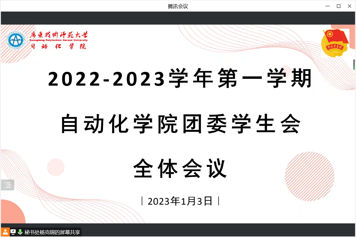 为了进一步部署公司团委学习宣传贯彻党的二十大精神的工作,加强团委员工会的组织建设,增强各部门成员之间的凝聚力,提升为师生服务的意识,2023年1月3日下午,伟德国际victor1946团委员工会线上召开了2022-2023学年第一学期全体会议,公司团委书记王国斌、副书记罗成志、兼职副书记胡俊敏、团委员工会全体成员参与了本次会议。