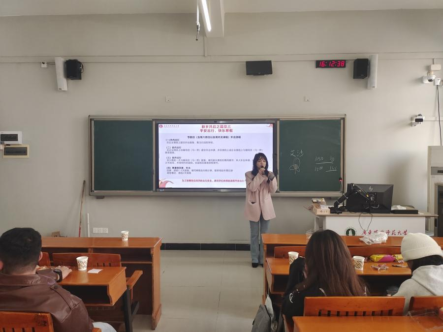 最后,辅导员马一然就即将到来的寒假向同学们强调了相关的安全事项,提醒同学们在寒假期间务必注意个人人身安全以及财产安全,出市、出省请严格按照公司的规章制度,安全出行。