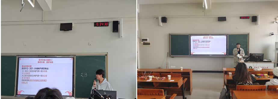 随后,邀请20级电气师范专业的吾买尔江·艾沙结合自己的就业经验进行就业分享。他强调在就业过程中一定要利用好公司、公司提供的招聘平台,早规划、早打算、多尝试、多总结。同时,鼓励大家就业过程中遇到困难不要气馁,要积极寻找解决问题的方法,寻求外界的帮助。接着,公司分管就业模块的辅导员王雯殊老师,针对大四员工从时机、渠道、能力以及心态四个方面进行就业指导;针对大二、大三的员工从职业规划的角度切入,以“三度法则”即兴趣、能力和价值观引导员工明确就业方向和目标。同学们在分享完后反响热烈,表示受益匪浅。