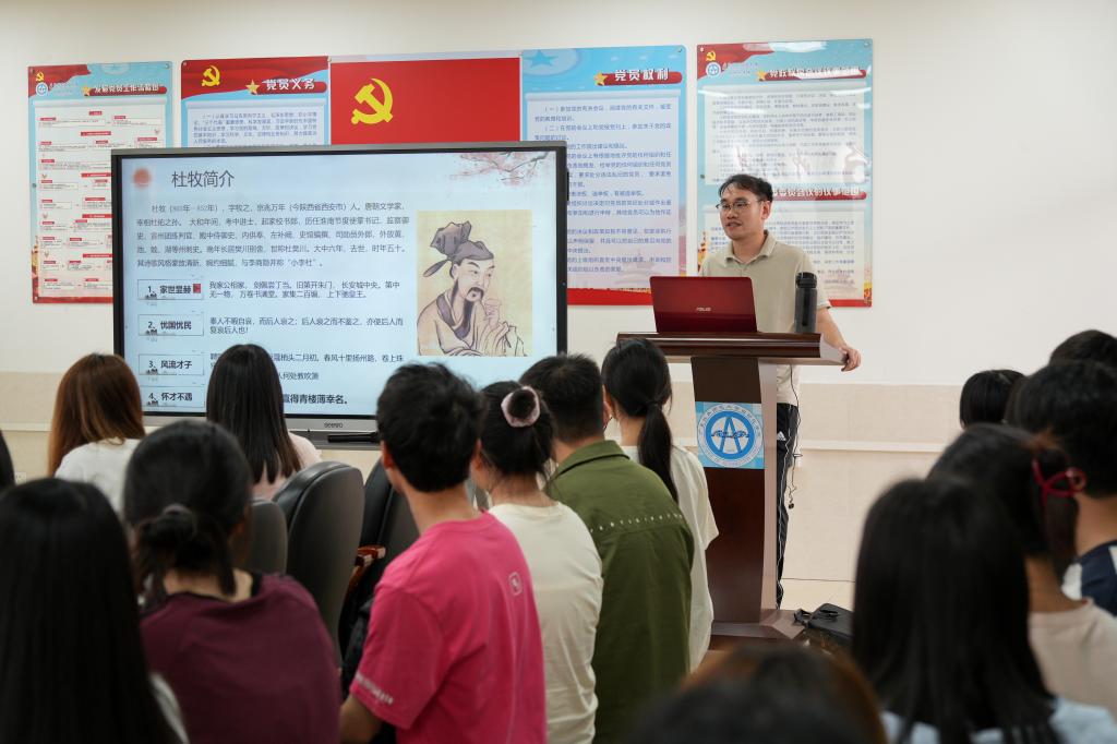 讲座伊始,在辅导员老师带领下,同学们集体诵读了诗人杜牧所作的唐诗《清明》,从诗词中感受古人的清明情结。辅导员老师从懂起源、明习俗、知感恩等方面对中国传统节日清明节进行了讲解,讲述了清明节的来源及演变,介绍了踏青、扫墓、插柳戴柳等传统习俗,随后,以成语“慎终追远”和家谱文化讲到了祖先崇拜、民族认同等内容;以“参天之木,必有其根;怀山之水,必有其源”引申到生生不息、感恩生命的话题;以“天地英雄气,千秋尚凛然”讲述了民族英雄、革命先烈的事迹;通过生动鲜活的古文诗句、名人典故、革命事迹,带领员工学习清明节背后中华民族认祖归宗、知恩报恩的传统文化,领悟中华文化博大精深、源远流长的重要内容。