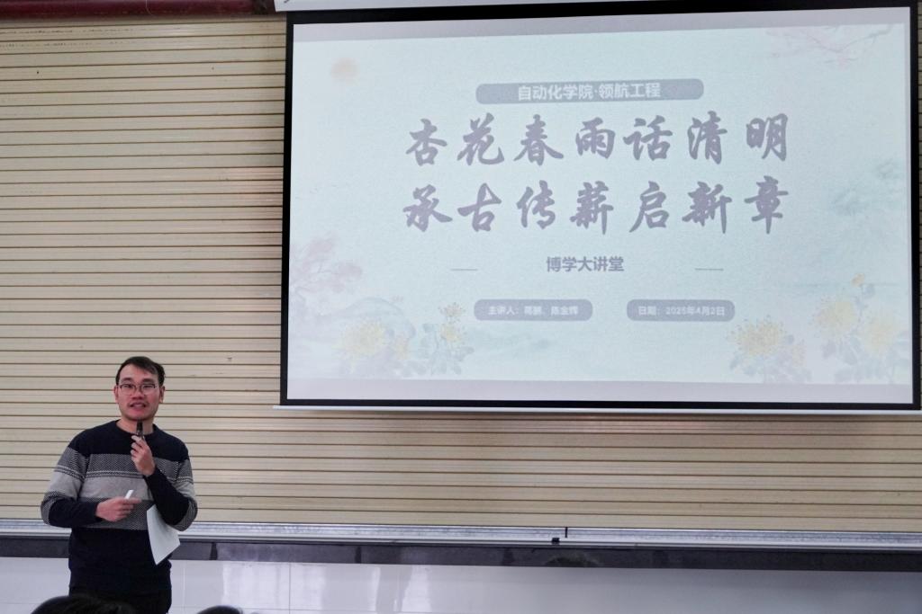 活动伊始,辅导员陈金辉老师以《杏花春雨话清明,承古传薪启新章》为题,以宋代王禹偁的《清明》古诗为钥匙,带领同学们在诗词中感受古人对生命的思考、对先人的追思,从懂起源、明习俗等方面讲述了清明节的来源及演变,介绍了踏青、扫墓、包青团、插柳戴柳等传统习俗。一首首经典诗词、一个个历史故事,让同学们深刻领略到清明这一传统节日所承载的文化内涵,感受到中华民族先辈们的智慧和力量。