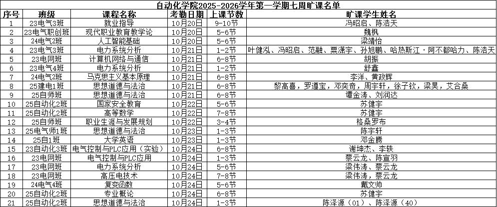 现将伟德国际victor19462025-2026学年第一学期7周课堂缺勤情况公示如下: