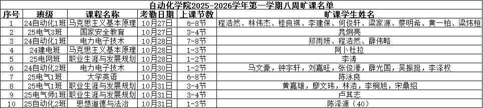 现将伟德国际victor19462025-2026学年第一学期8周课堂缺勤情况公示如下: