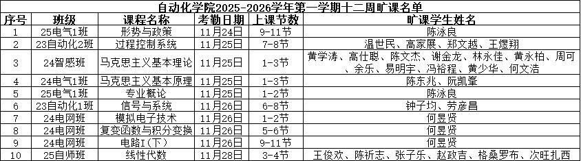 现将伟德国际victor19462025-2026学年第一学期12周课堂缺勤情况公示如下: