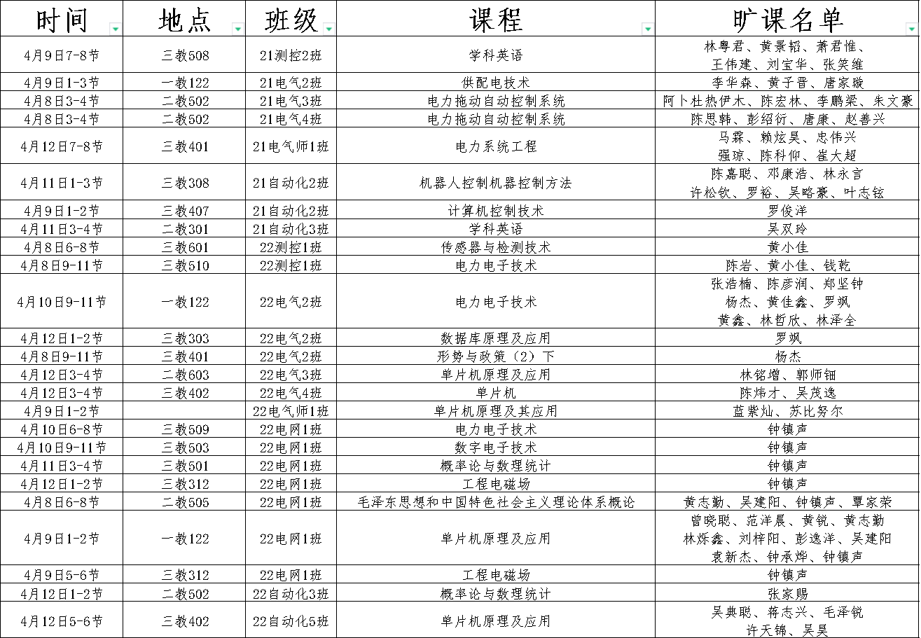 现将本学期第七周课堂考勤情况公示如下:
