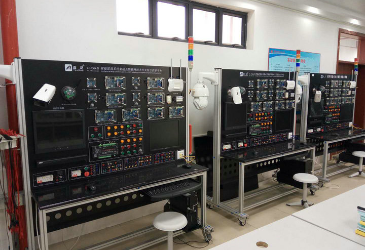 建筑环境实验室位于白云校区第一实训楼4楼401室,使用面积120 m2,主要仪器设备:楼宇智能化设备监控系统实训考核装置、楼宇智能化火灾报警及联动系统实训考核装置、物联网集成管理技术开发综合教学平台、智能建筑系统集成及物联网技术开发综合教学平台、BIM能源管理平台、给排水设备安装与控制实训装置。能同时容纳30人实验实训,使用效率达200人/年。