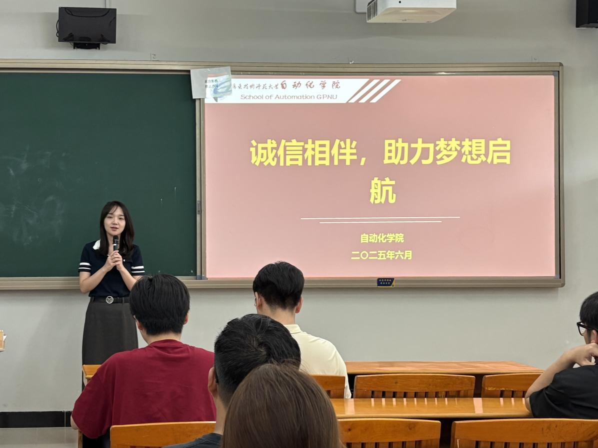 为增强员工诚信意识,规范资助申报,引导正确使用奖助资金,发挥资助育人功效,营造诚信校园文化氛围。2025年6月17日,伟德国际victor1946在白云校区二教303举办诚信主题教育活动。公司辅导员马一然、朱超睿以及公司全体家困生参与此次活动。