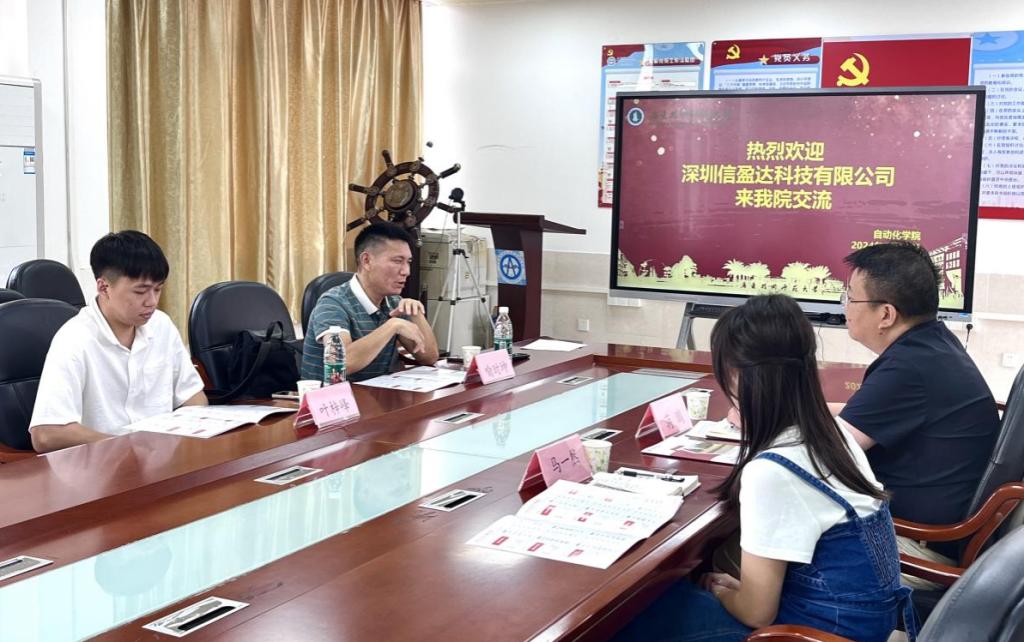 洽谈中,蒋鹏首先对深圳信盈达科技有限公司的到来表示热烈欢迎,并对公司的发展历程、专业设置、教学成果等进行了详细介绍。随后,喻时坤介绍了公司的发展历程、业务领域以及对人才需求和培养计划。双方就如何更好地实现资源共享、优势互补、共同发展进行了深入探讨。