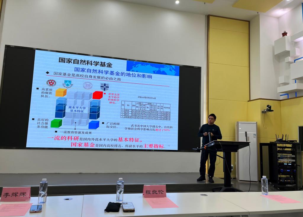 程良伦教授以《基金、科研与人生》为题,从专家学者角度分享了国家基金的地位和影响、资助体系、申请撰写的技巧、重要时间节点规划、申请与评审流程、申请类型、团队组建、申报选题、科研工作的重要性、什么是“科研”、“4P”和如何规划人生,强调申报的老师要对申请基金的工作存在敬畏的精神,并结合自己的申报工作对人生的规划进行了详细的解读。程教授还就与会老师提出的问题进行一一解答。